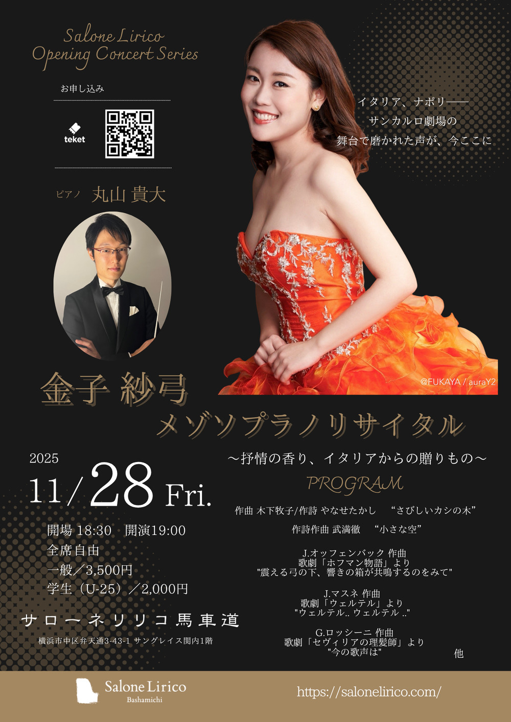日本人として、そしてイタリアで生きる歌い手としての現在を、サロンの親密な空間で心をこめてお届けします。