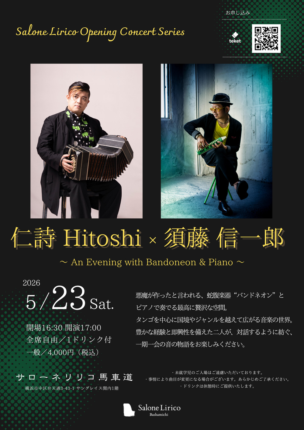 悪魔が作ったと言われる、蛇腹楽器“バンドネオン”とピアノで奏でる最高に贅沢な空間。