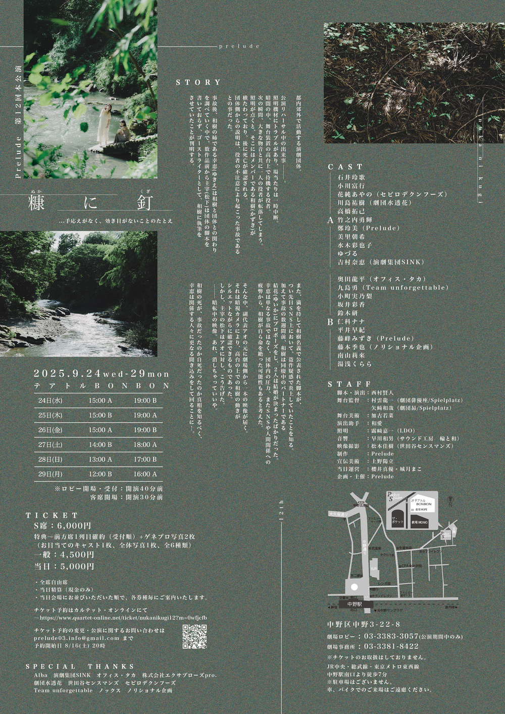 舞台監督:村雲龍一 (劇団俳優座/Spielplatz) 矢﨑和哉 (劇団昴/Spielplatz)