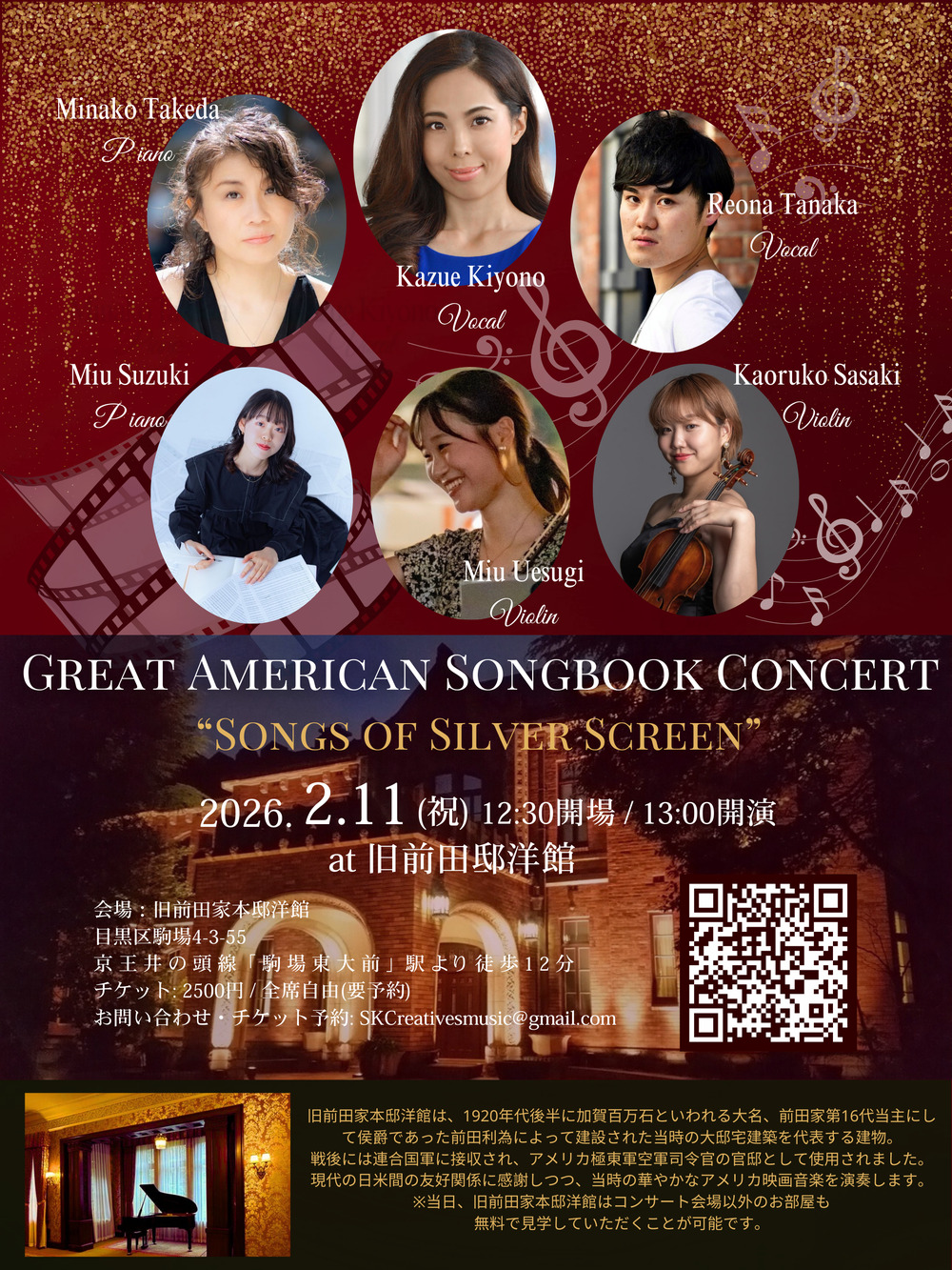 ※当日、旧前田家本邸洋館はコンサート会場以外のお部屋も無料で見学していただくことが可能です。