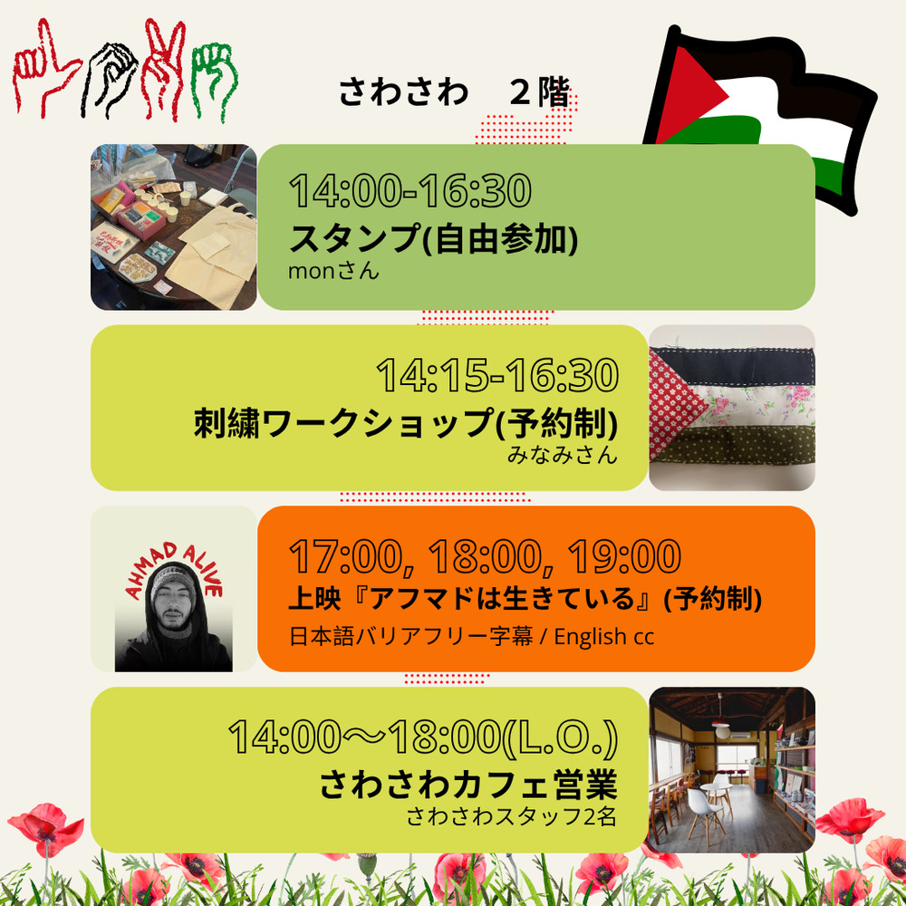 On the 1st floor, footage of deaf individuals surviving amidst ongoing massacres in Palestine will continue playing until 16:30.