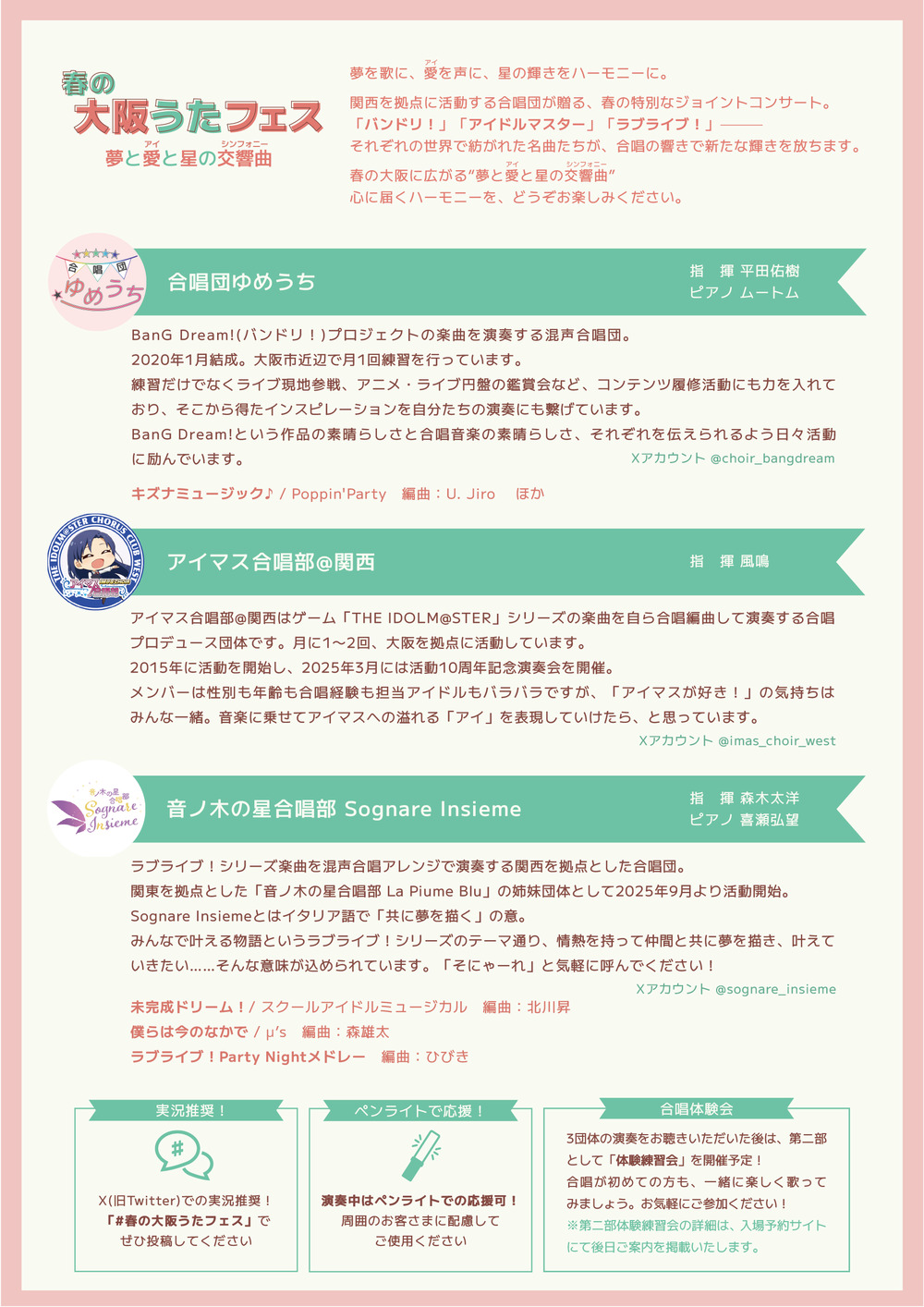 関西を拠点に活動する合唱団が贈る、春の特別なジョイントコンサート。