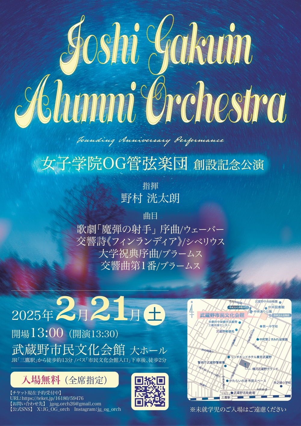 女子学院中学校・高等学校のOGにより結成されたオーケストラ。 2026年2月21日(土)に武蔵野市民文化会館 大ホールにて初公演が開催決定!