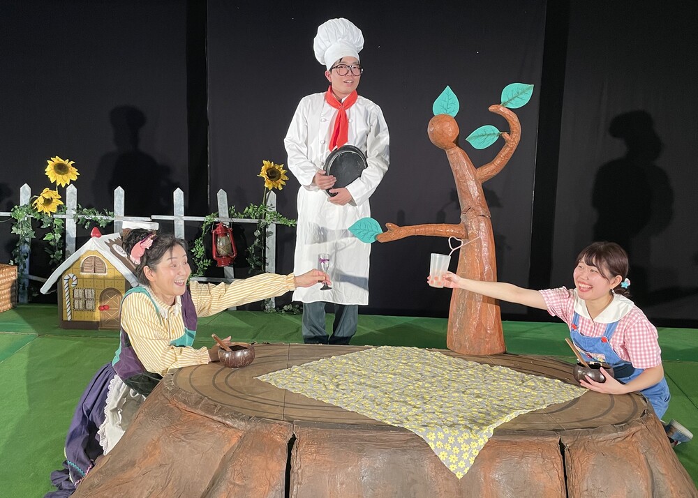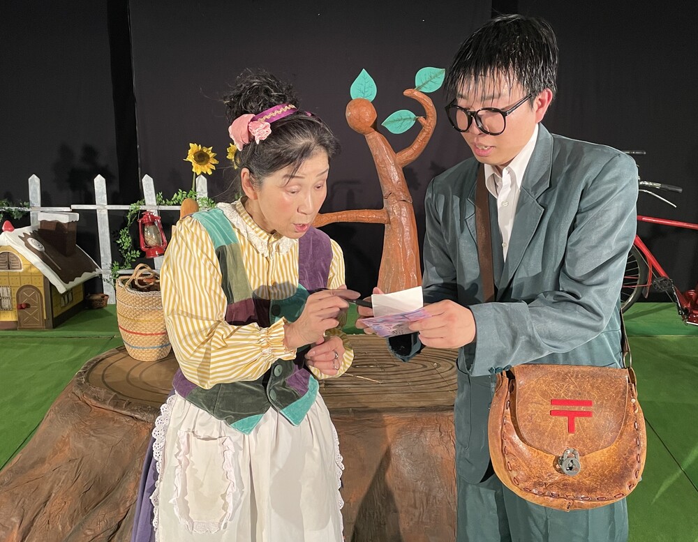暑い夏のある日、小高い丘の上の新しい芽を出している大きな切りかぶ。その横にある小さな家に住む優しく面白いけど怒ると怖い不思議なおばさん、夏休みの宿題を持って家を飛び出した女の子、完璧に郵便を届けようとする新米の郵便屋さん。この3人が切かぶの前で出会い、おかしくて不思議な話が始まります。嘘をついてしまった女の子は嘘をつくことで自分も周りも傷つき心が痛いことを知ります。新米の郵便屋さんは二人に巻き込まれ、心を痛めながらも優しく寄り添い続けます。少女はおばさんとの会話で、本当にいけないことは何なのかを教えられ、素直になることの大切さ、本当に大切なものは何なのかを知ります。少女も郵便屋さんも少し成長し、おばさんが教えてくれた魔法の言葉を携えて大切な日常へ戻ってゆくのです。舞台にはいろんな仕掛けが施されマジックショーのように楽しく不思議なことが起こり、目が離せません。