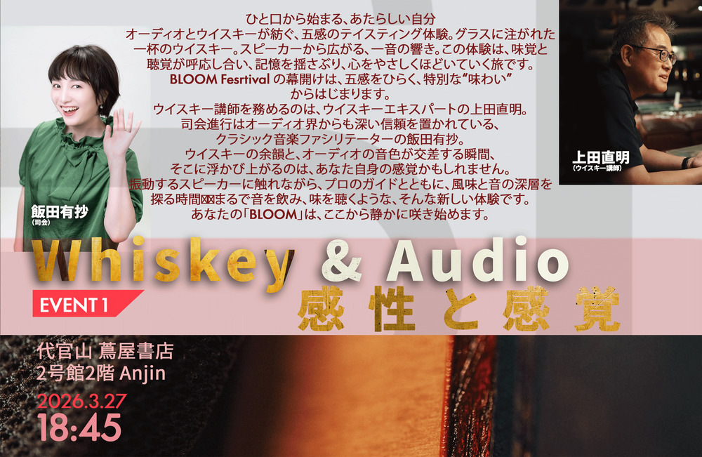 ひと口から始まる、あたらしい自分。オーディオとウィスキーが紡ぐ、五感のテイスティング体験。BLOOM Festivalの幕開けは”音を飲み、味を聴く”特別な体験からはじまります。