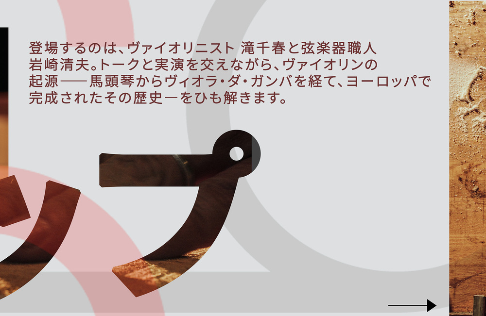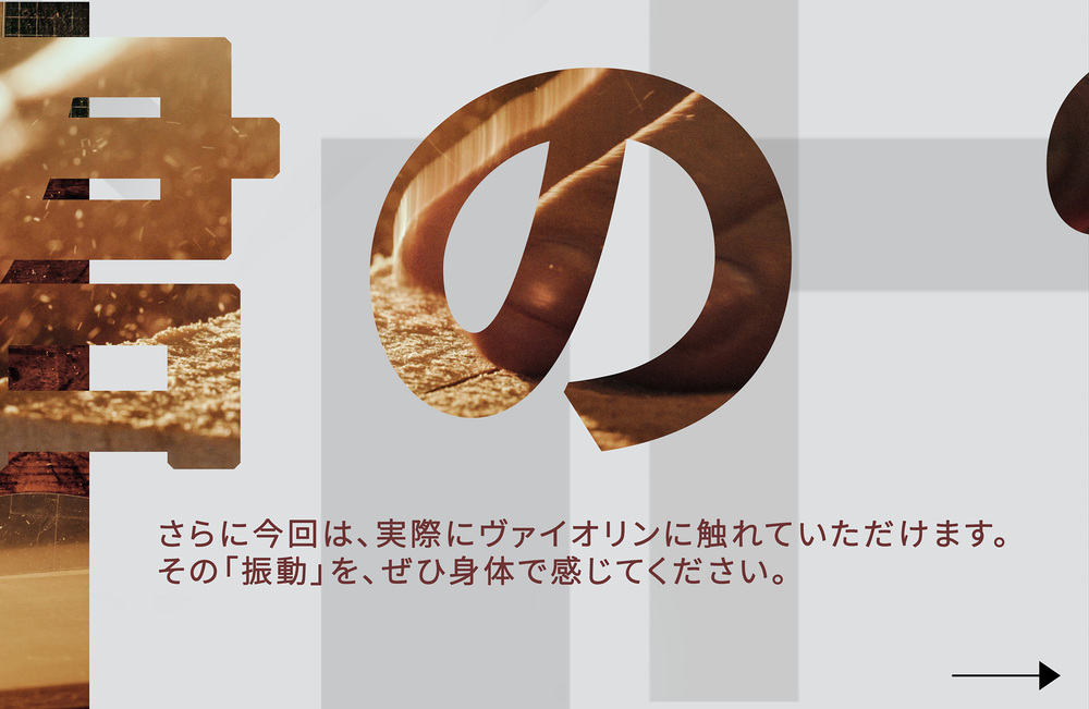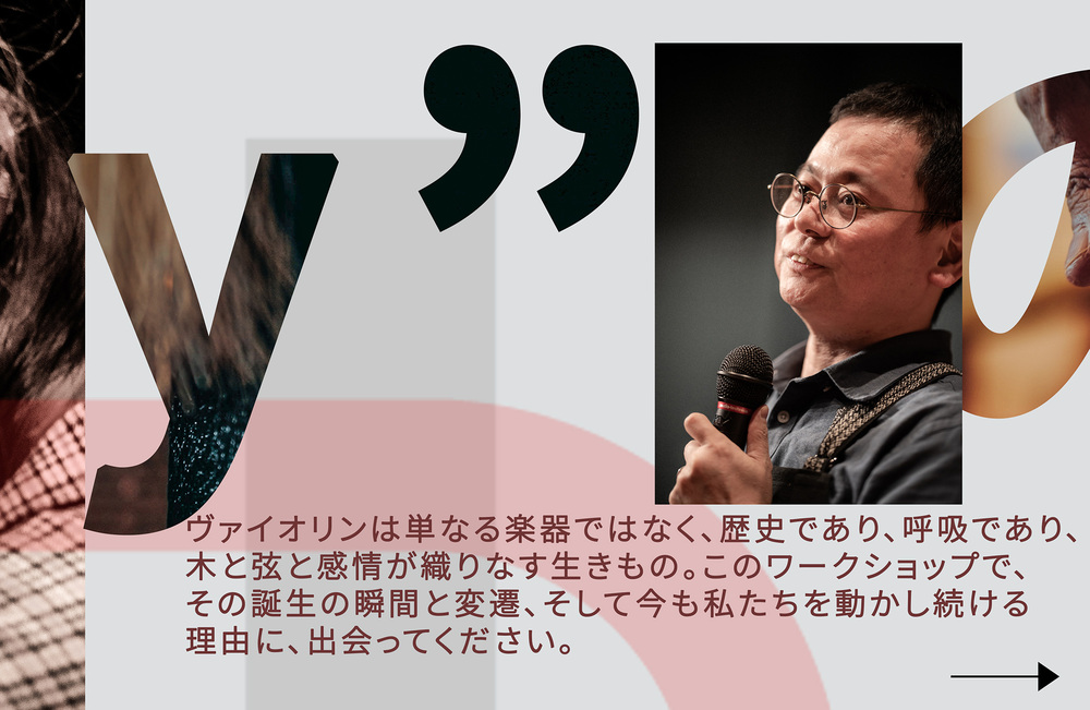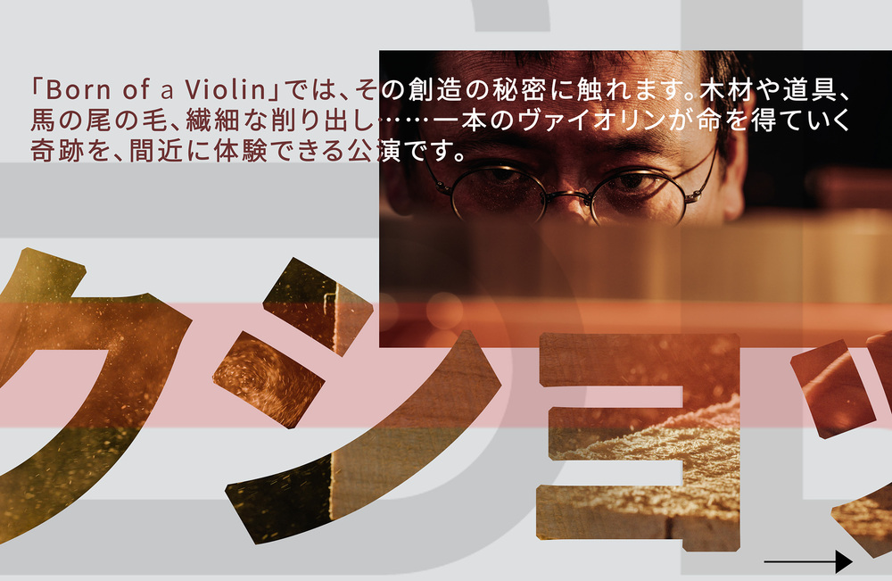 ヴァイオリンが生まれる瞬間に立ち会う公演。制作工程や歴史を、演奏と実演を交えて紹介します。実際にヴァイオリンに触れ、その振動と命を体感できる特別な体験です。