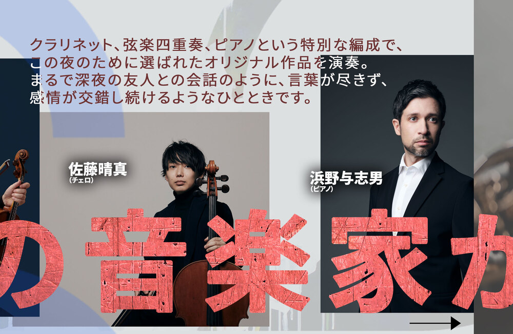 夜8時開演、BLOOM が贈る特別な室内楽。クラリネット、弦楽四重奏、ピアノで紡ぐ濃密な対話。呼吸が溶け合う一夜限りの響きを、ぜひ体験してください。