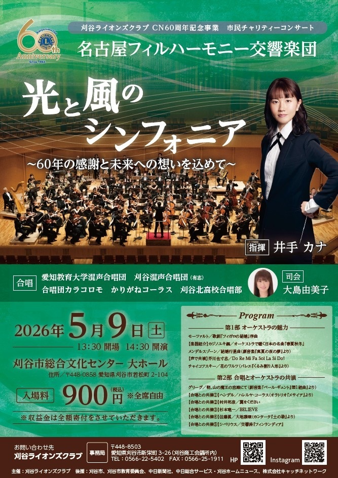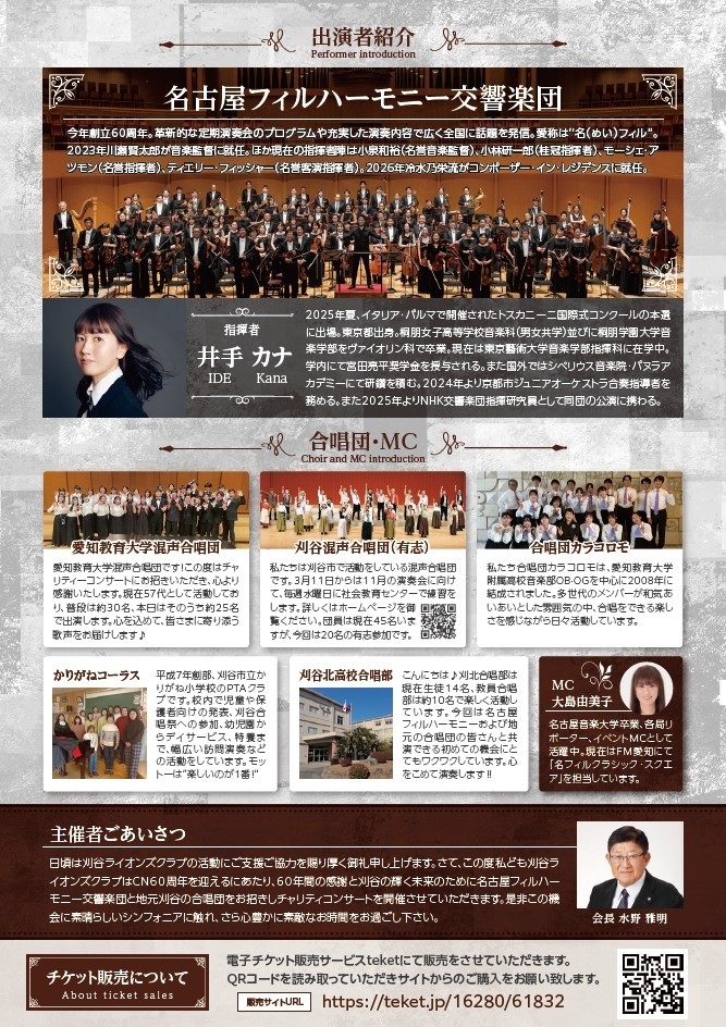 名古屋フィルハーモニー交響楽団の迫力ある演奏と刈谷市内の合唱団のやわらかな歌声をお楽しみ下さい!!