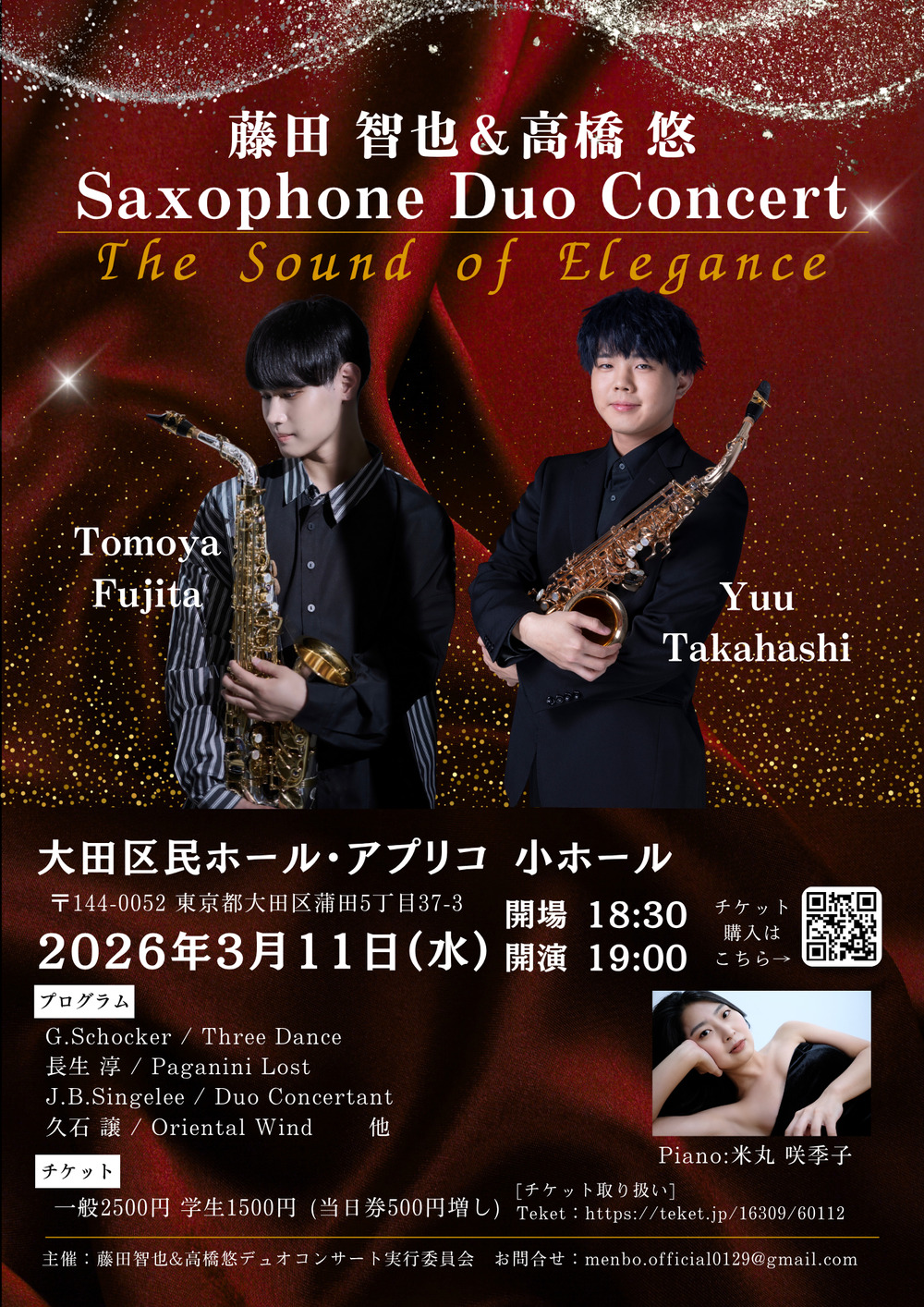 また、バリトンサックスのデュオにもチャレンジします!そちらも併せてお楽しみに!