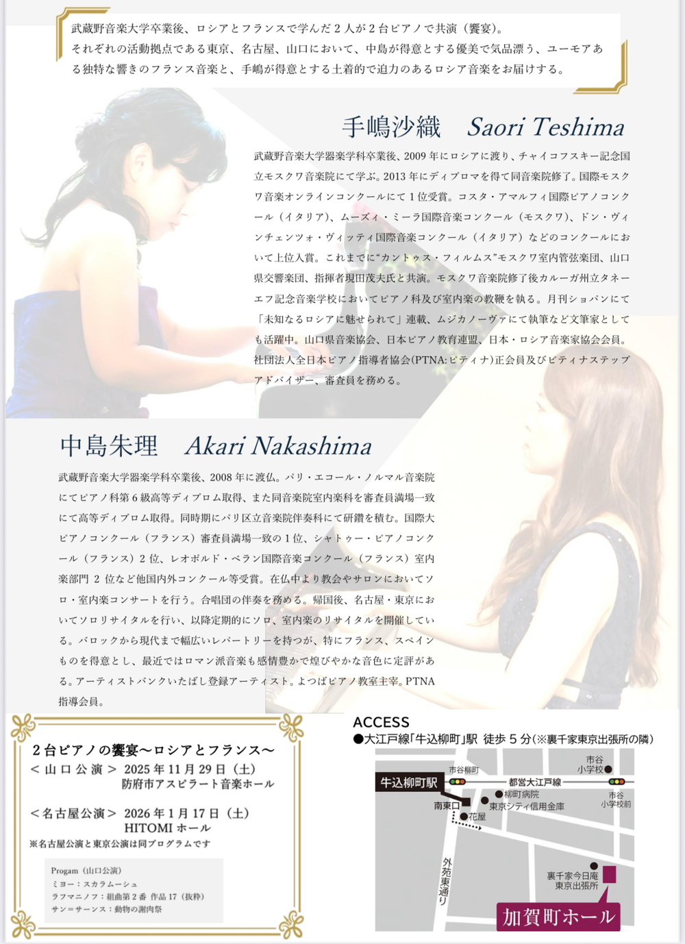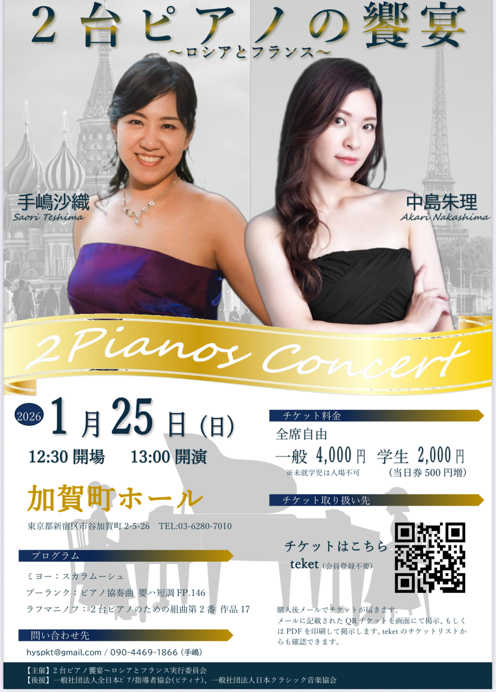 ロシアとフランス、国旗は似た3色からなる国ですが、言語も文化も風習も全く違う国で、それぞれピアノを通して学んだ2人が2台ピアノで共演(饗宴)する。