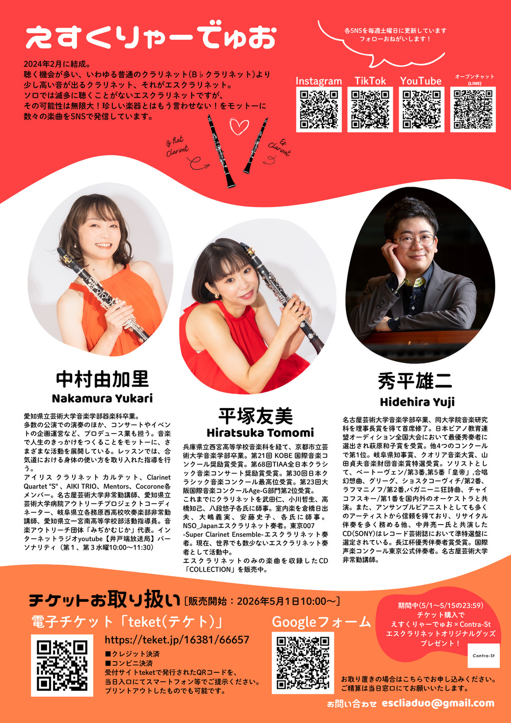 ※5/1〜5/15(23:59)チケットご購入で、えすくりゃー×Contra-Stエスクラリネットオリジナルグッズプレゼント!