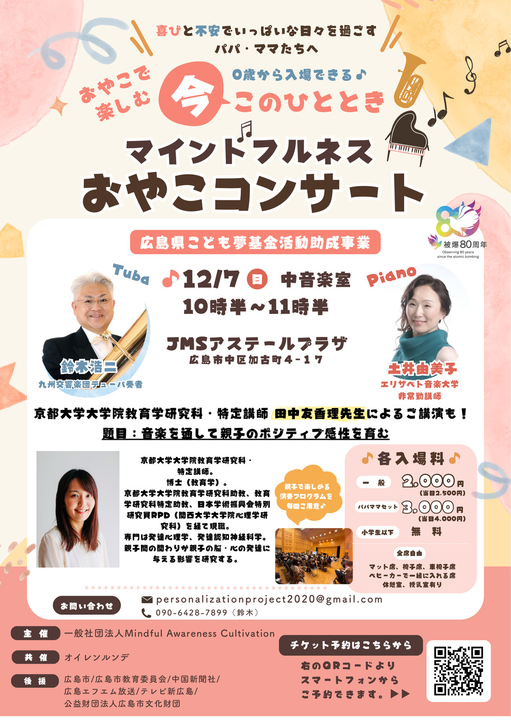 12月7日は特別企画、京都大学大学院教育学研究科・特定講師 田中友香理先生による「音楽を通して親子のポジティブ感性を育む」講演も!