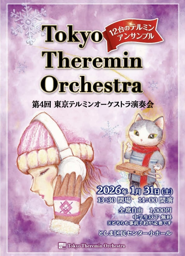世界最古の電子楽器テルミン。その音色は電子楽器でありながらどこか懐かしく、アナログを感じさせます。テルミン好きの方はもちろん、新しい音楽世界を探している方にも、世界唯一の『12台のテルミンによるオーケストラ』をお楽しみいただければ幸いです。
