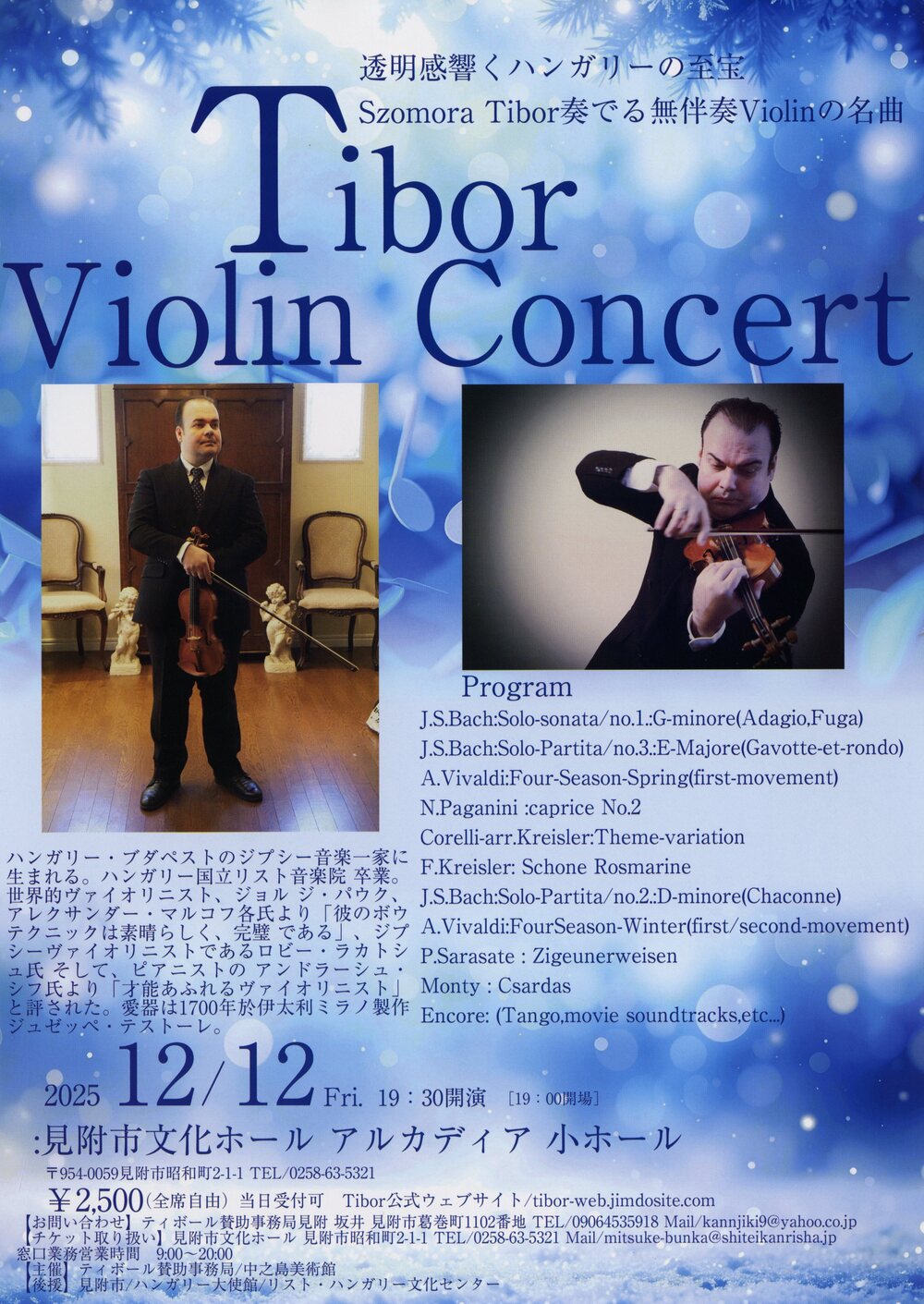 恩師の惜しみない愛情と支援、そして受け継がれた音楽の魂があったからこそ、Szomora Tibor氏は今、世界を舞台に活躍する音楽家へと成長しました。感謝の気持ちを胸に、恩師の教えを未来へと紡ぐTibor氏の演奏を、ぜひ本公演でご堪能ください。
