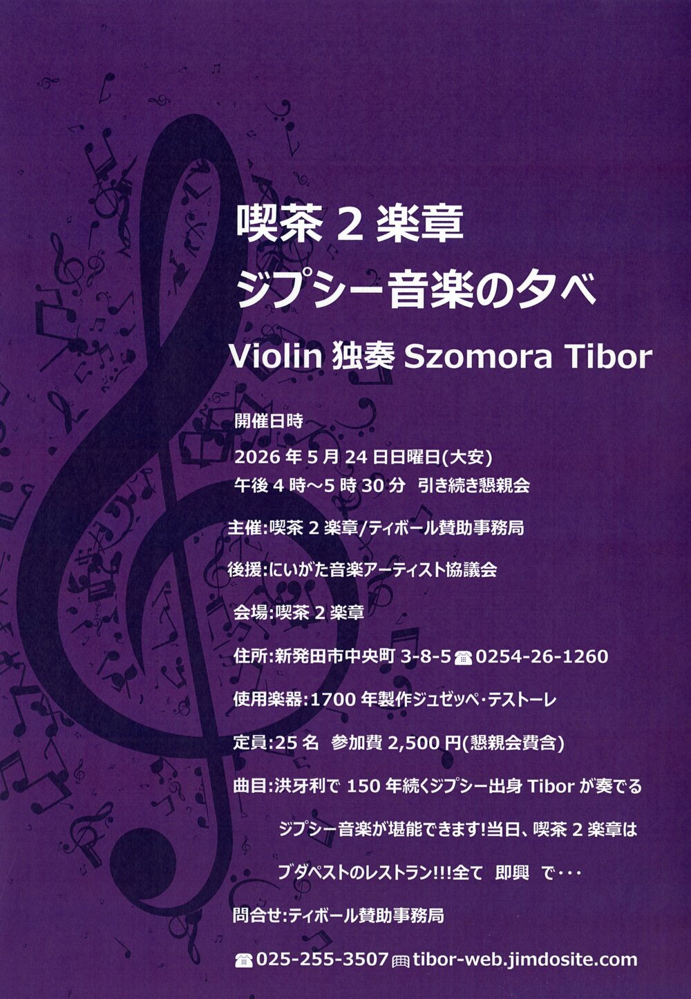 来日するまで何度も共演したジプシーヴァイオリンの大家「ロビー・ラカトシュ」氏顔負けのジプシーヴァイオリン披露します!この夜は新発田/喫茶2楽章はブダペスト/高級レストランと化すこと保証します(#^.^#)
