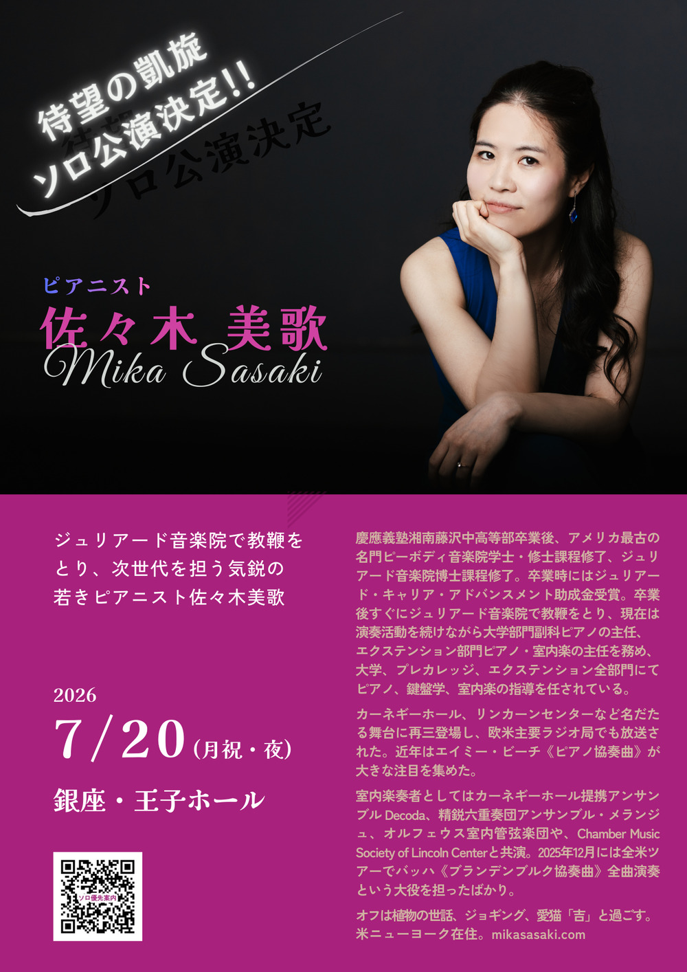 指導:佐々木 美歌(ピアニスト・ジュリアード音楽院教授)