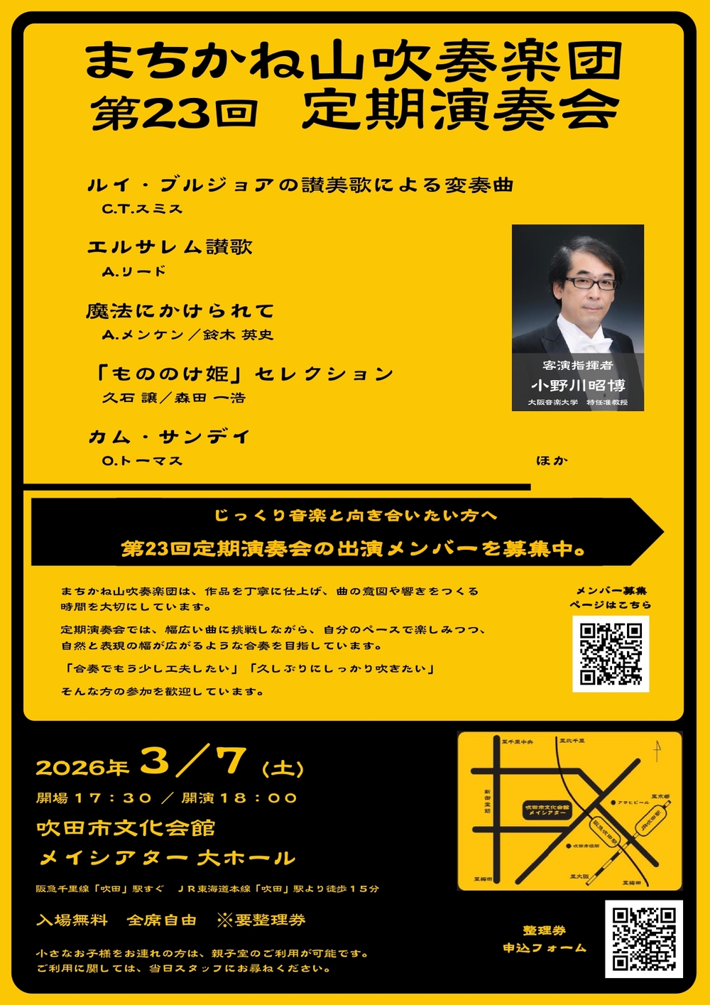 これまでのまちかね山吹奏楽団にないバリエーションに富んだ選曲ではないでしょうか。