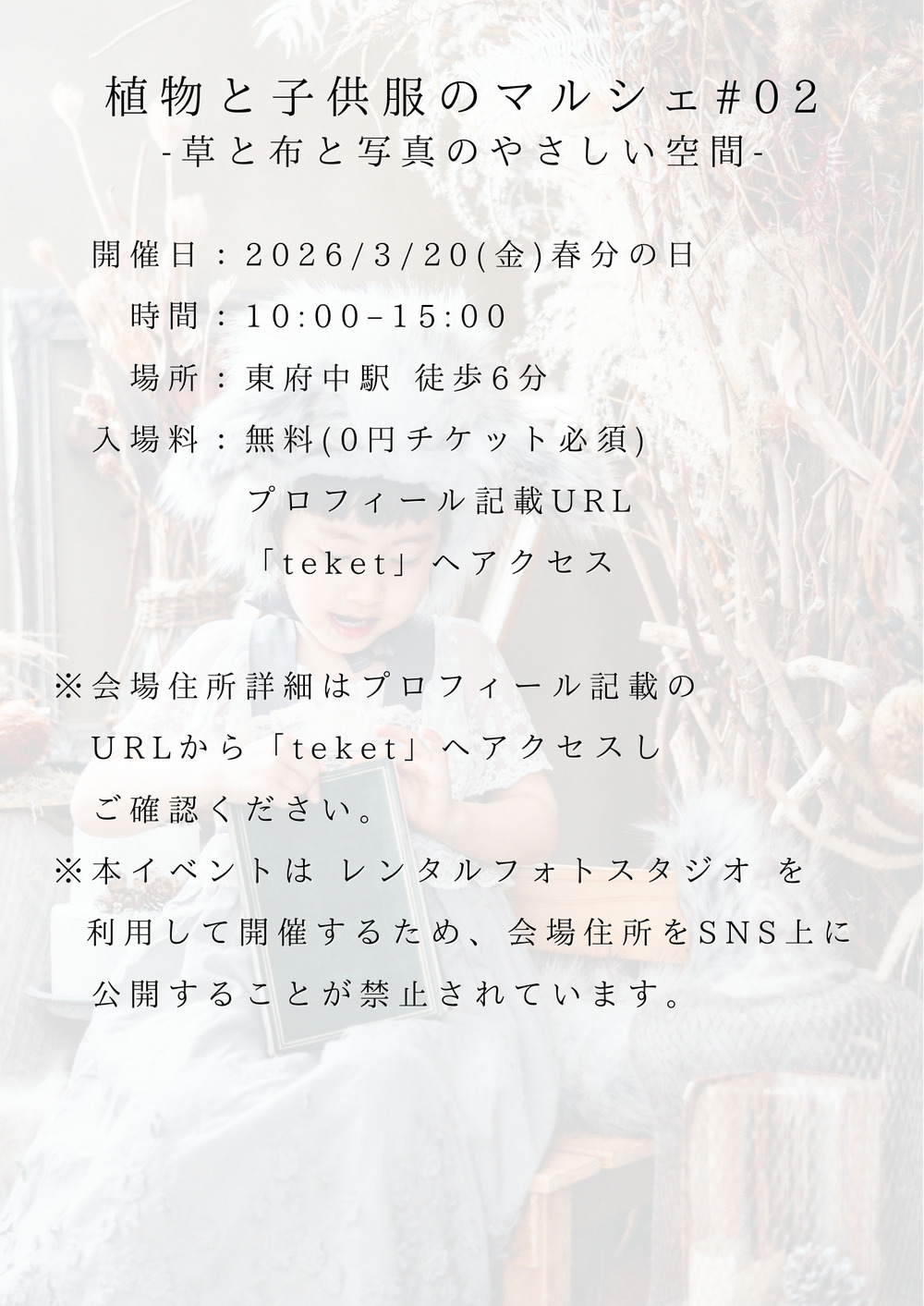 その他のお問い合わせ先:上記のURLからInstagramへアクセスし、『植物と子供服のマルシェ』アカウントへメッセージにてお問い合わせください。