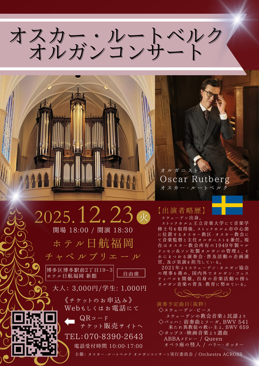 スウェーデン・ストックホルム市の都心に位置するオスカー教会より、主任オルガン師オスカー・ルートベルクが初来日。