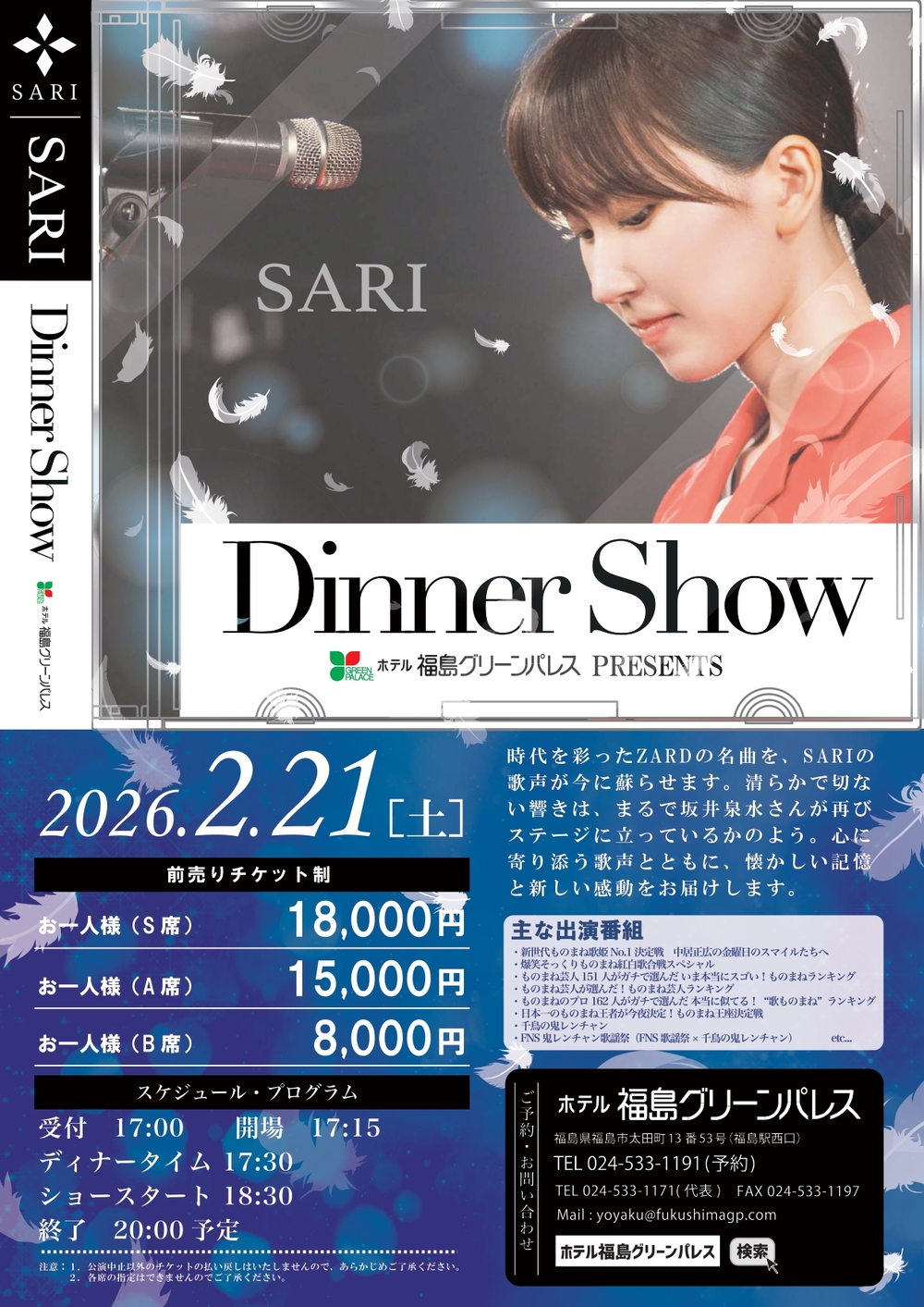時代を彩ったZARDの名曲をSARIの歌声が今に蘇らせます。