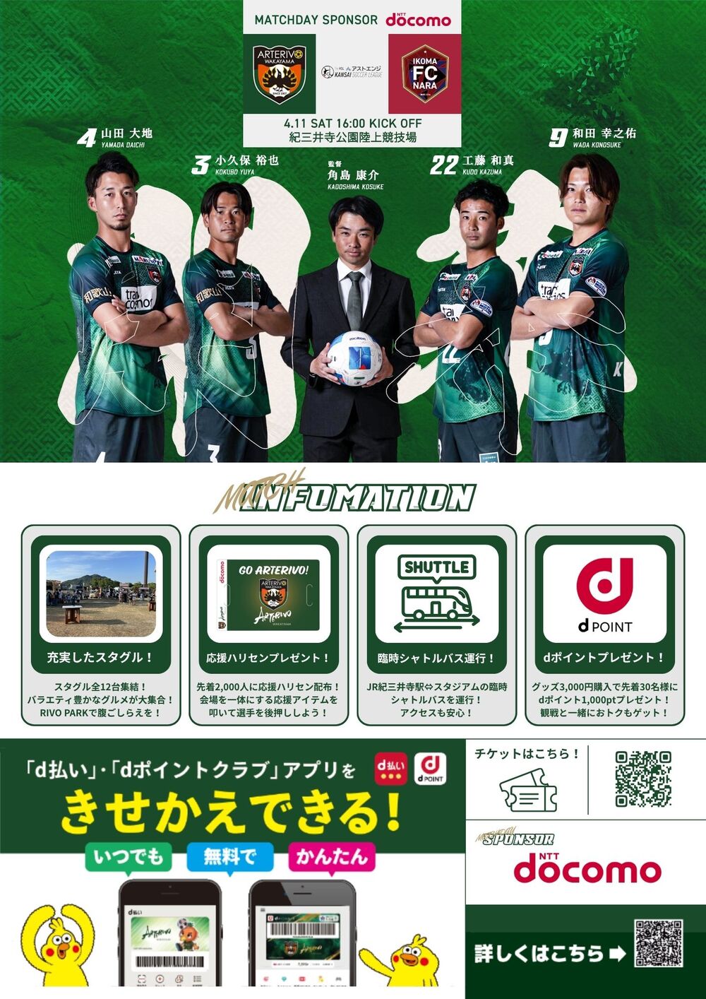 4月11日(土) 16:00KO 14:30一般開場 (予定)