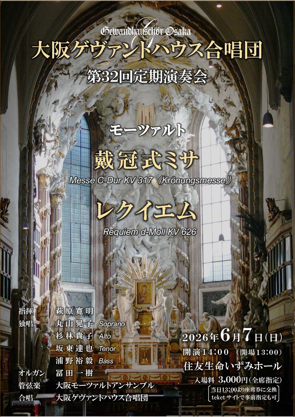 本年はモーツァルト(Wolfgang Amadeus Mozart、1756-1791)の生誕270年に当たります。このため、代表的な2曲の教会音楽をとり上げました。「戴冠式ミサ」は、1779年の復活祭のために作曲され、ザルツブルク時代の最も完成度が高いミサ曲と評価されている名曲です。「レクイエム」は、ウィーンで教会音楽を演奏する環境が整ったことから、新様式の教会音楽の作曲に意欲を燃やしていたときに貴族から匿名の依頼を受け、心血を注ぎながらも未完に終わった遺作です。妻コンスタンツェの才覚により弟子の手を借りて完成し、出版もされて今日に残る不朽の名作となったものです。