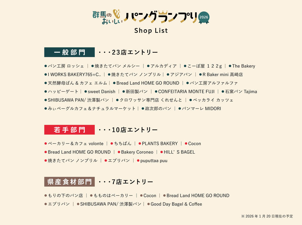 群馬のおいしいパングランプリ実行委員会(企画運営:群馬テレビ株式会社・株式会社NLG)は、群馬県内のパン屋を味わい尽くせる県下最大規模のパンイベント「群馬のおいしいパングランプリ」を、2026年3月22日に群馬県庁にて初開催いたします。