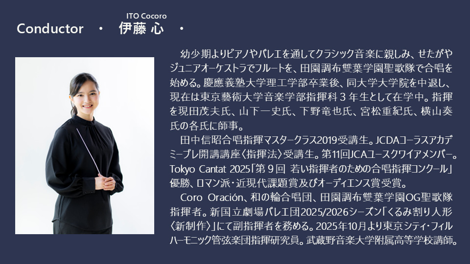 いずれもクラシック音楽を代表するクラスの2つの名曲の演奏を、たち管とは4回目の共演となった伊藤心さんの指揮でお送りいたします。