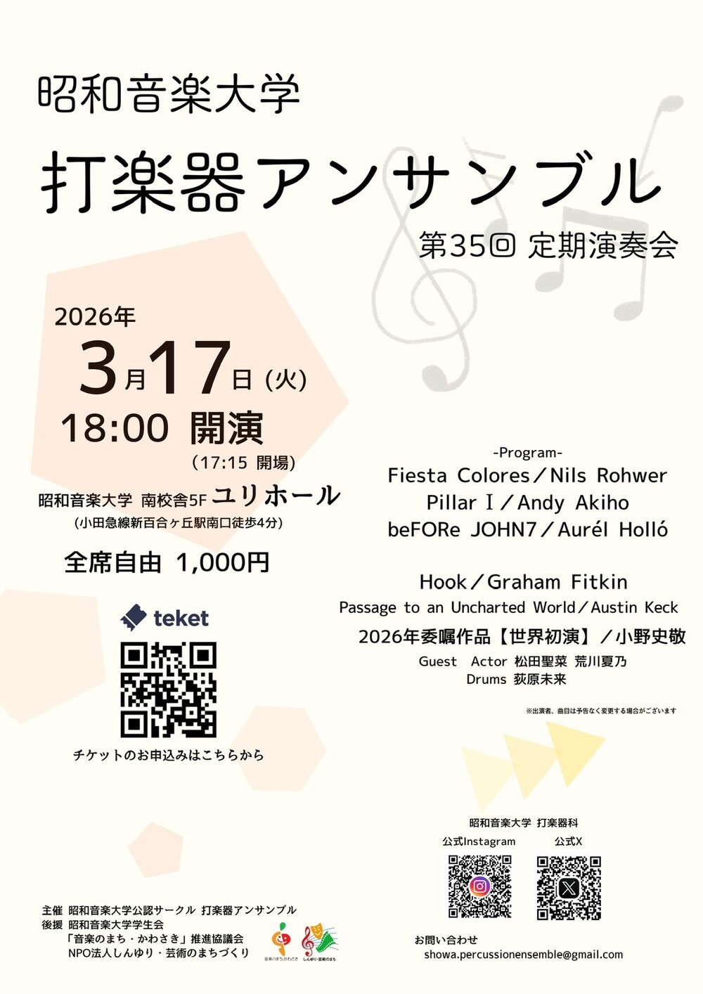 メールアドレス:showa.percussionensemble@gmail.com