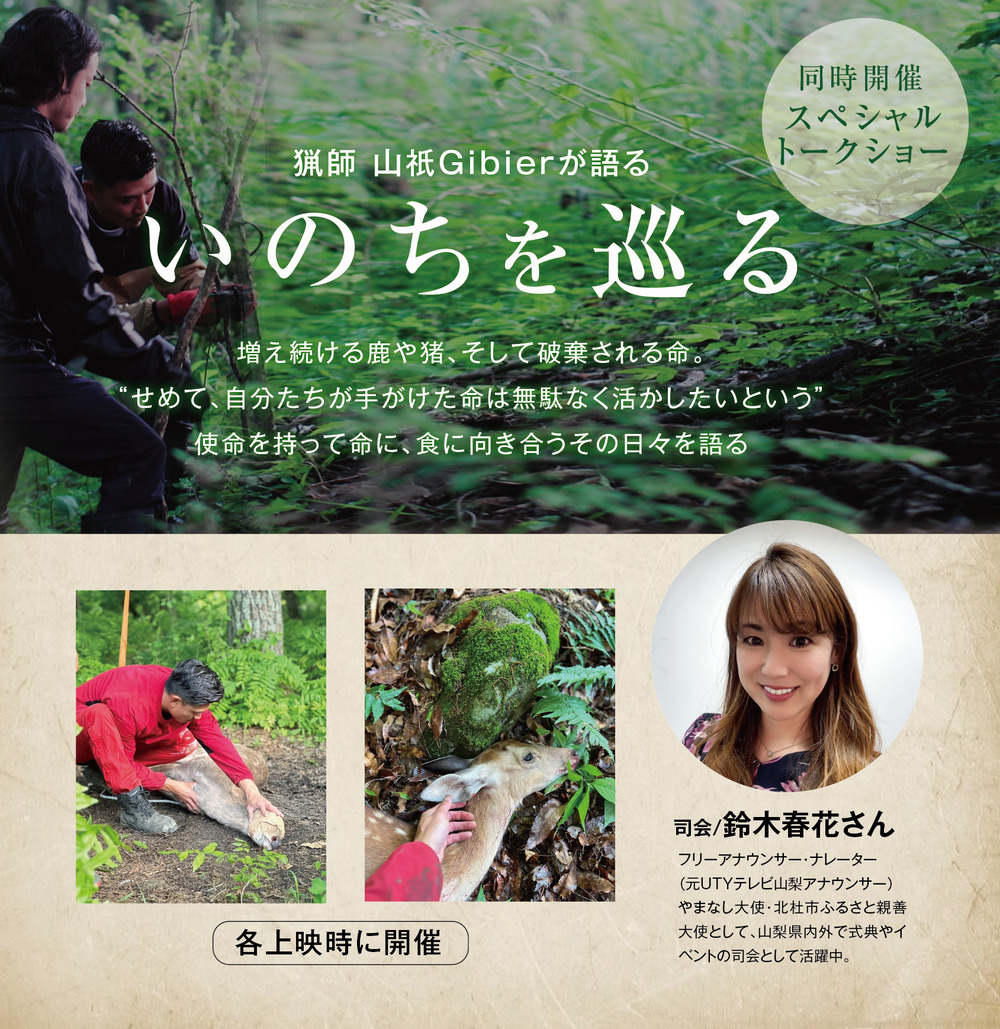 当日は 猟師 山祇Gibierが語る 「いのちを巡る」トークショーも同時開催