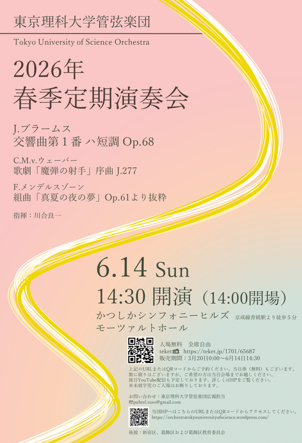 東京理科大学管弦楽団 チケット担当:tus.soukatsu@gmail.com