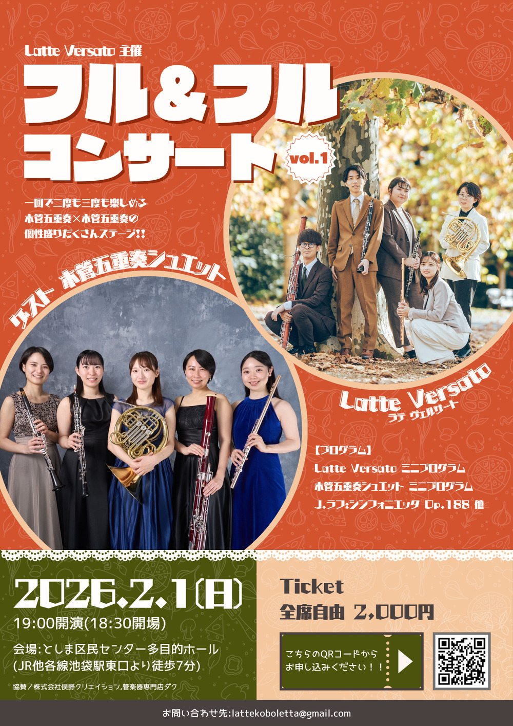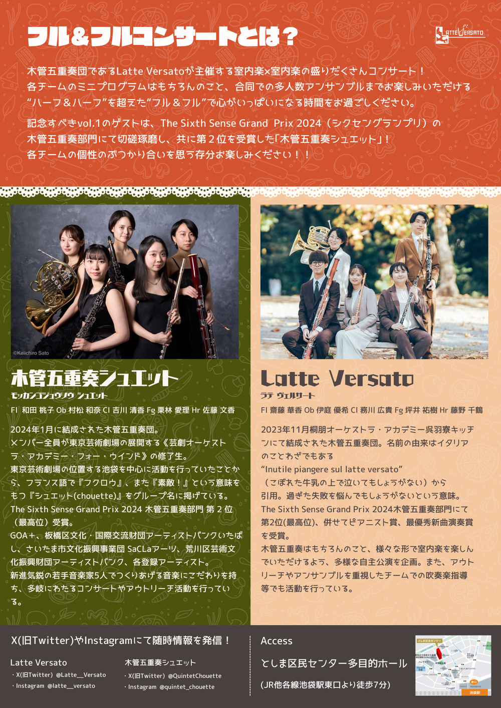 木管五重奏団Latte Versatoが主催する、室内楽×室内楽の贅沢なコンサート。