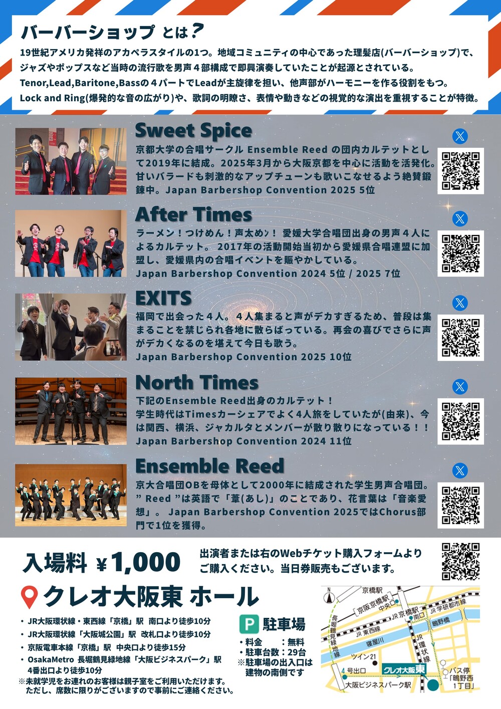 さらに、西日本を中心に活動する Barbershopper がゲスト出演!!