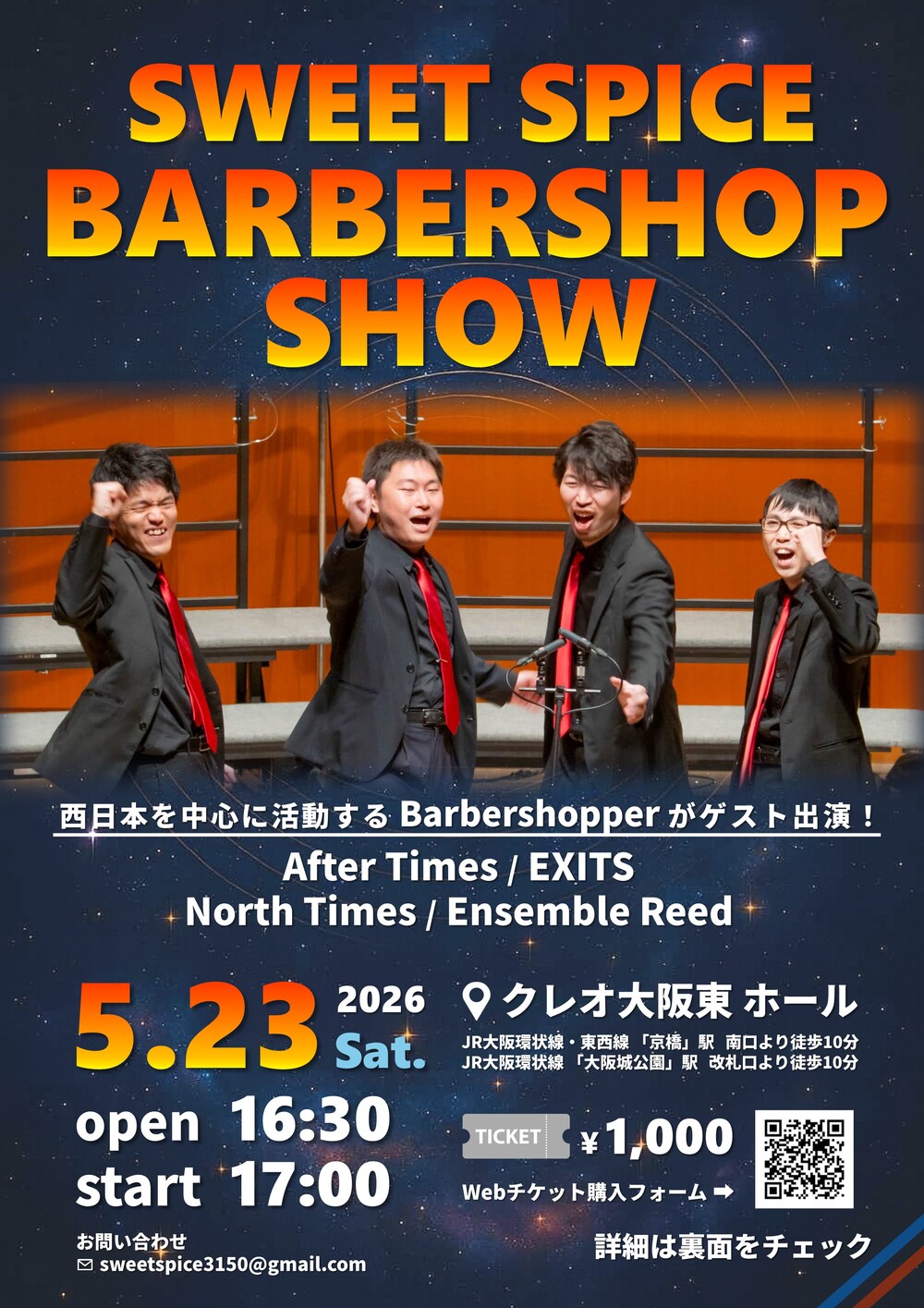Sweet Spice は2025年3月から大阪京都を中心に活動を活発化しているBarbershop Quartet(バーバーショップ・カルテット)。