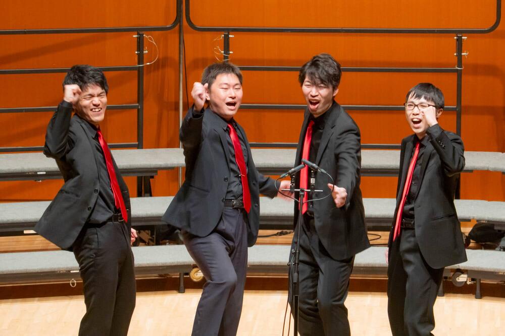 Tenor, Lead, Baritone, Bass の4パートで Lead が主旋律を歌い、他声部がハーモニーを作る役割をもつ。