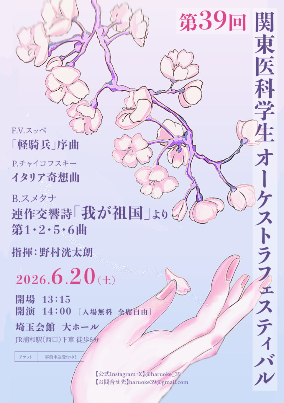 関東圏の医療系学生を中心に構成されたオーケストラ団体、通称「春オケ」です。今年で39回目の開催です。素敵な音楽をお届けします!