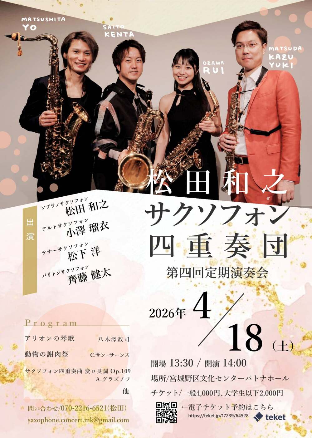 メールアドレス:saxophone.concert.mk@gmail.com