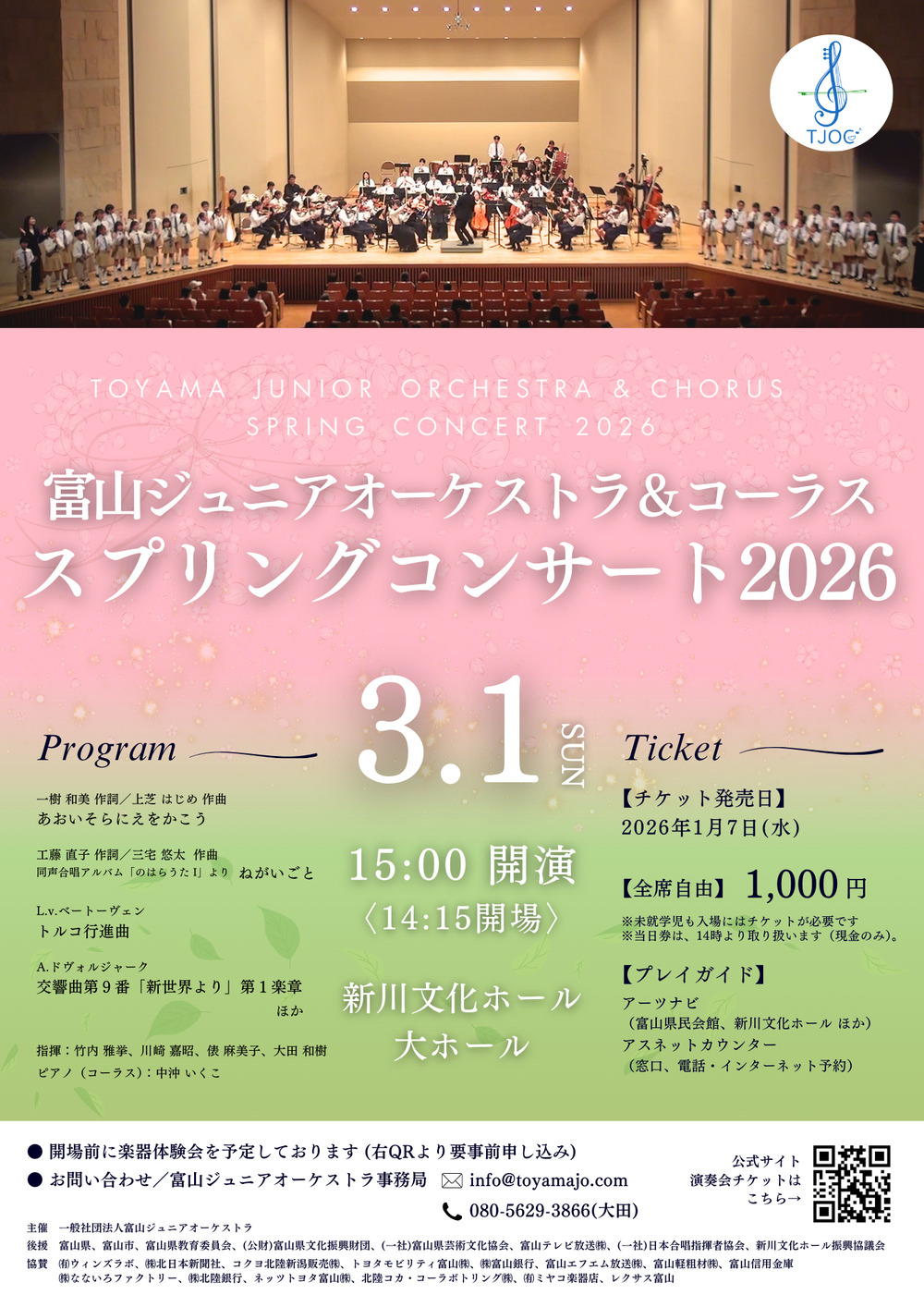当法人は、県内の演奏家たちの協力を得て、発足となりました。小学1年生から高校3年生までを対象とし、オーケストラ・コーラスの両部門で、音楽教育を通して次代を担う人材育成を図るとともに、富山県の音楽文化の発展の一助となるよう努めていく所存です。 楽器演奏や歌唱の技術向上はもちろんですが、人として成長することが1番大切と考えております。多くの仲間と一緒に1つの音楽を作り上げることで、芸術に対しての感受性だけでなく、人に対しての自主性と協調性が豊かに育まれます。子供時代にそのような経験をすることは、生涯の財産となります。1人でも多くの子供たちがこの活動を通じて、人として成長し、未来の富山を担う人財になってくれることを願っております。