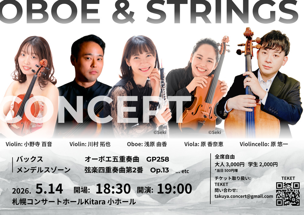 バックスのオーボエ五重奏曲をメインに据えた室内楽演奏会です!