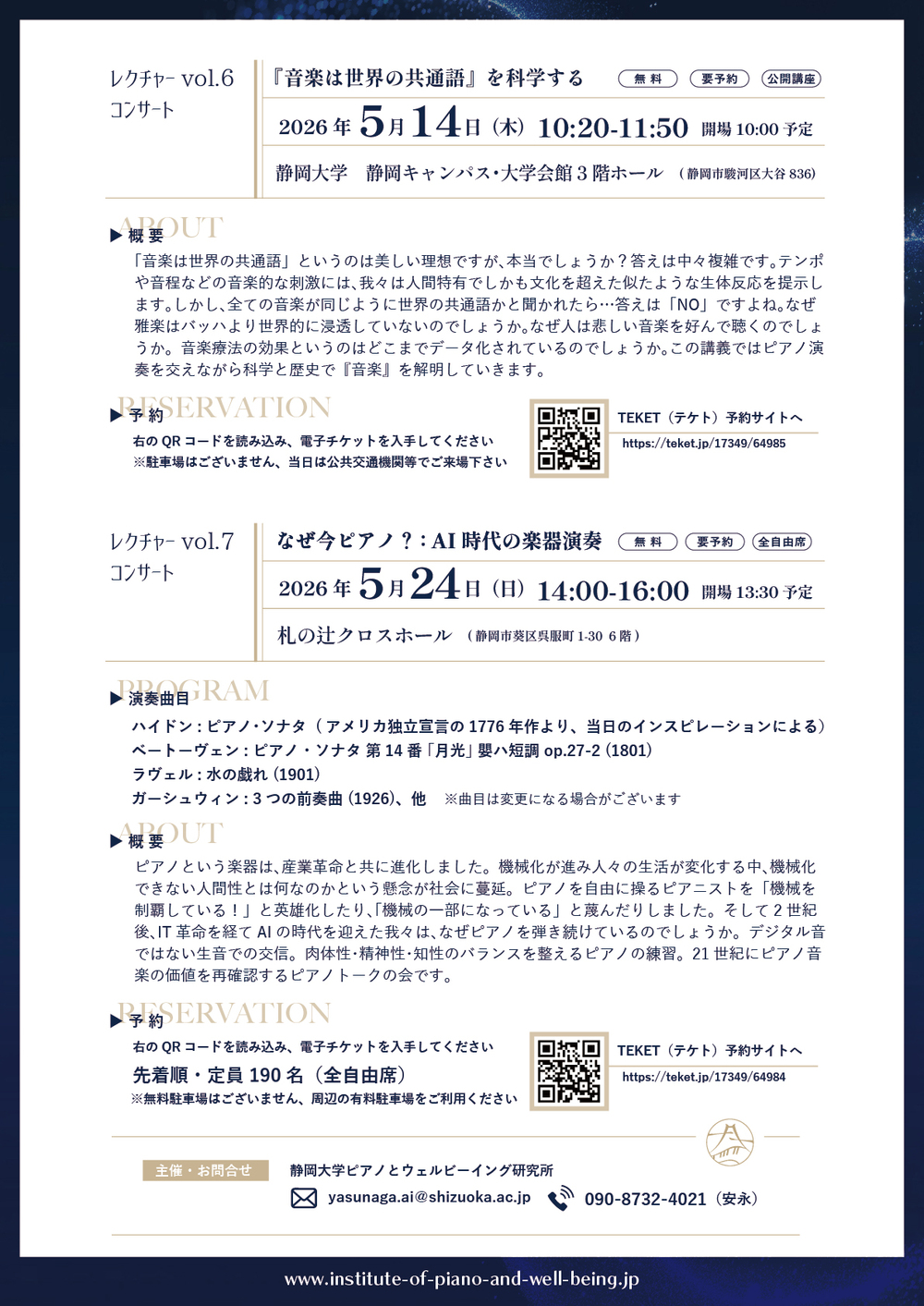 静岡大学ピアノとウェルビーイング研究所|レクチャーコンサートvol.6