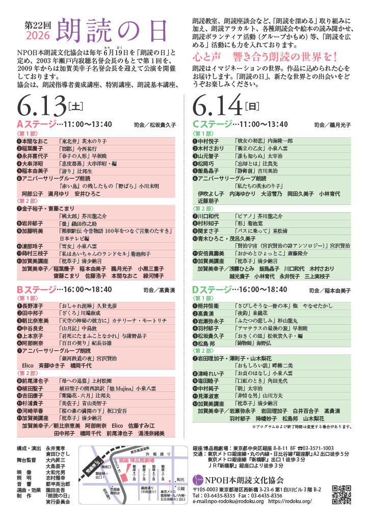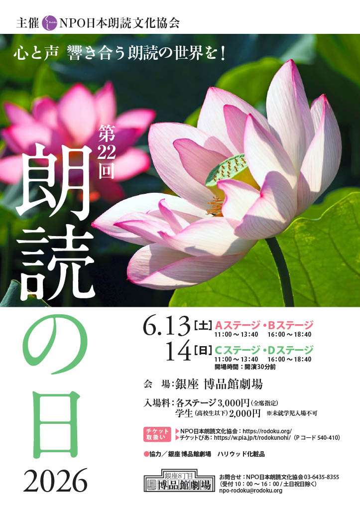 本公演のチケット販売価格には、手数料および郵送料(500円) を含んでおります。
