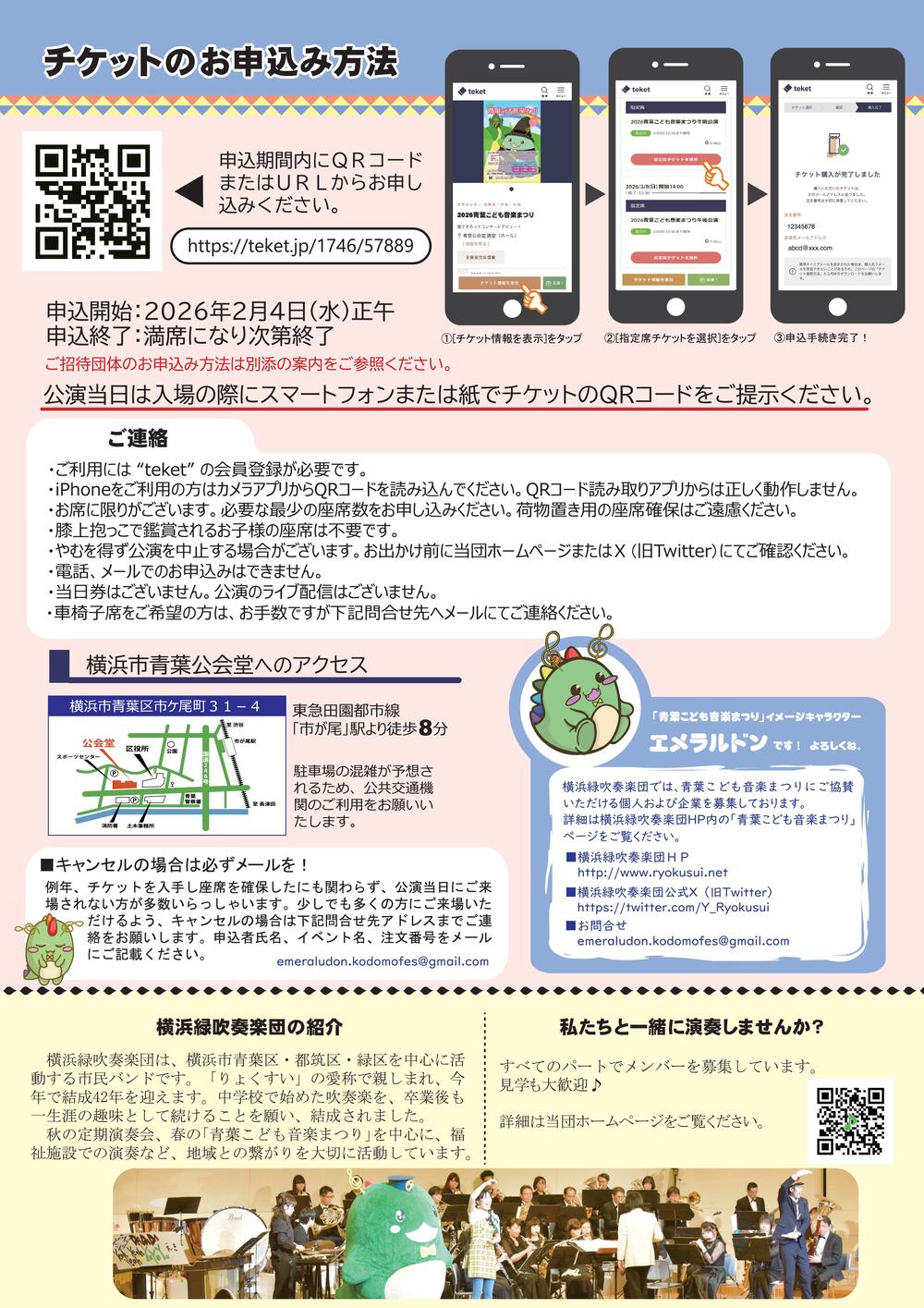 車椅子席をご希望の方は、お手数ですが問合せ先(emeraludon.kodomofes@gmail.com)へご連絡いただきますようお願いいたします。