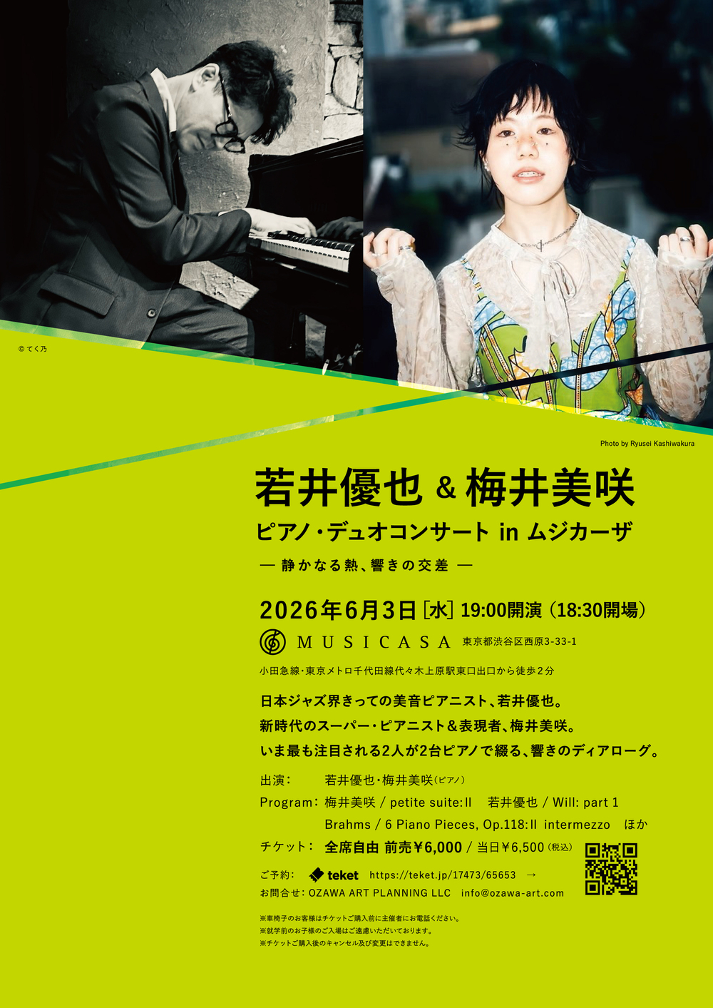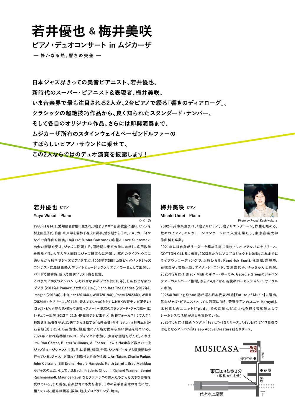 日本ジャズ界きっての美音ピアニスト、若井優也、新時代のスーパー・ピアニスト&表現者、梅井美咲。