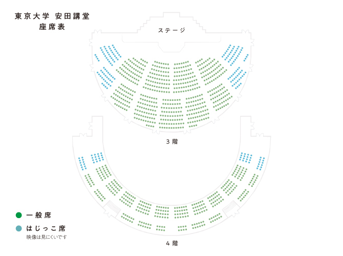 「はじっこ席」は、どなたでもご購入いただけますが、映像は見にくいです。