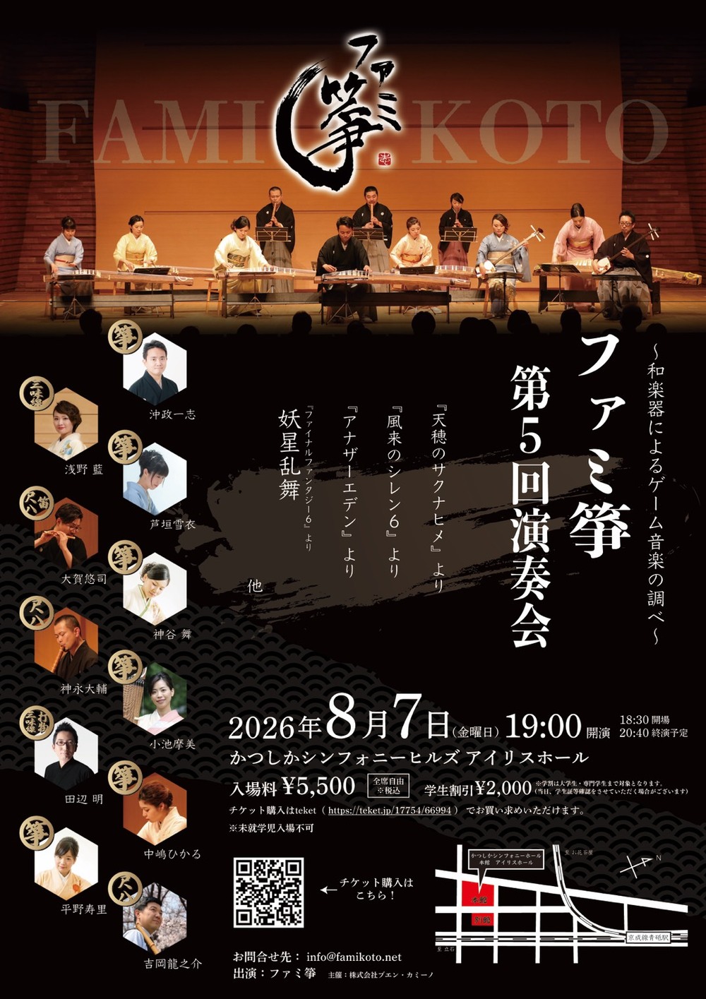 ゲーム音楽を和楽器で演奏する集団「ファミ箏」、久しぶりのホールコンサートです♪