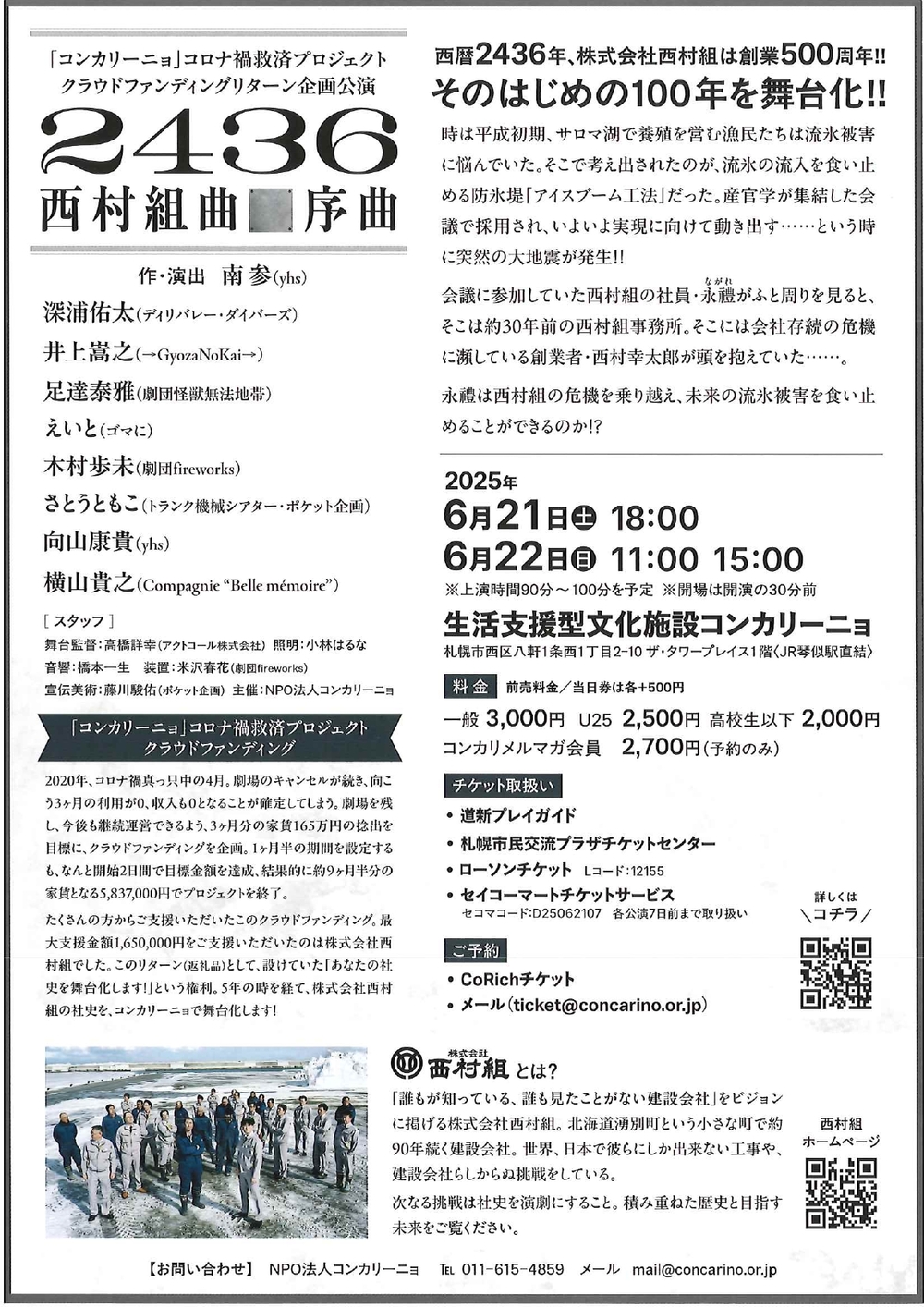 西暦2436年、株式会社西村組は創業500周年!!そのはじめの100年を舞台化!!