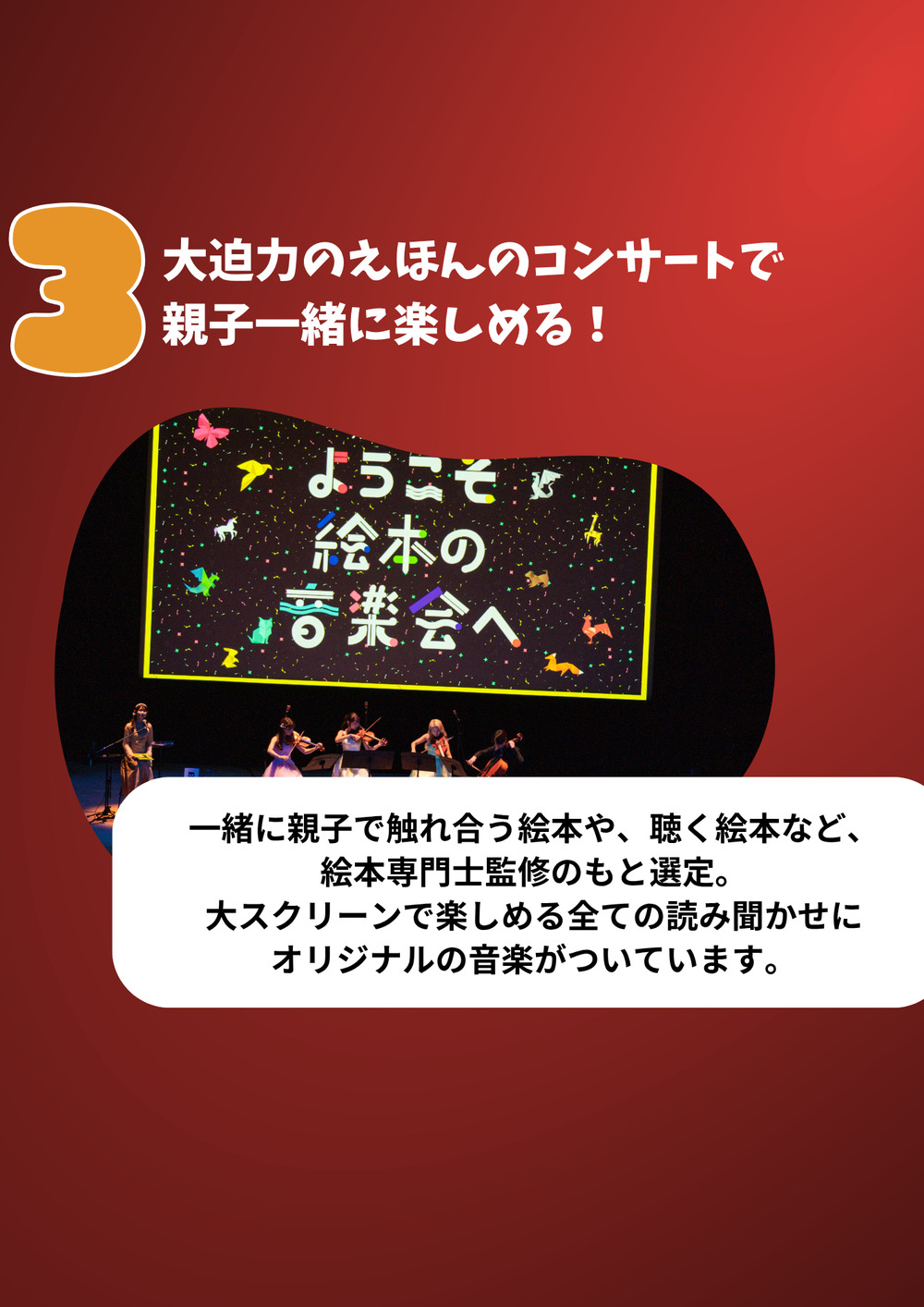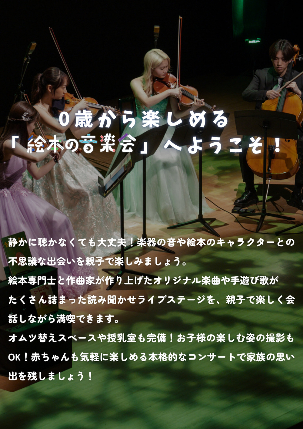 親子でたくさん会話をしながら聴いてほしいと思って制作しているコンサートです。