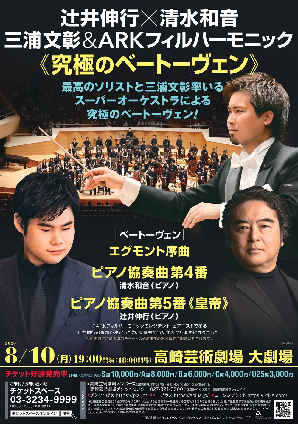 望みうる最高のソリストを迎え、その高い音楽性からヴァイオリニストとしてはもちろん指揮者としても高い評価を受ける三浦文彰が、自ら組織した名手揃いのヴィルトゥオーゾ・オーケストラ「ARKフィルハーモニック」を率いて、ベートーヴェンの至極の名作を披露する必聴必見のコンサートがやってくる!