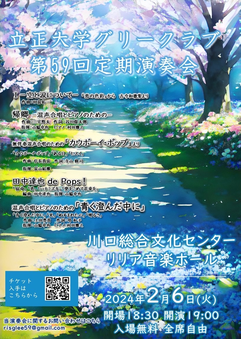 今年度の集大成として1年間共に努力を重ねてきた仲間とこうして歌える喜び、支えてくださる全ての関係者の方々に感謝し、誠心誠意をつくして演奏させていただきます。