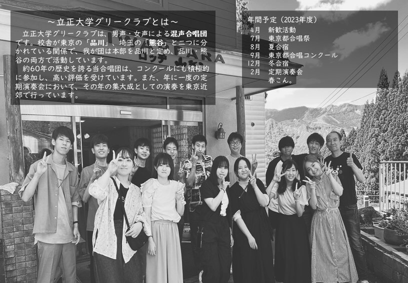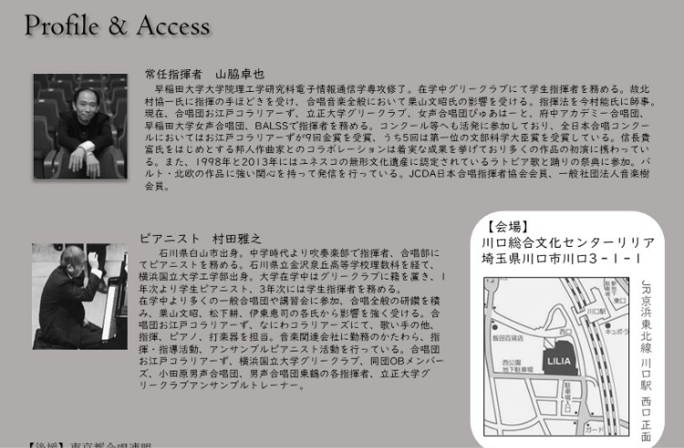 第1ステージで披露させていただく2曲は今年度東京都合唱コンクールで発表した楽曲です。私たちにとって難易度の高い楽曲でしたが、多くの時間をかけて精度を磨いてまいりました。歌詞とハーモニーで創りだされる切なさや雄大さを感じていただきたいと思っております。